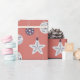 A modern pattern of greyed lavender and deep purple boho holiday ornaments with celestial details on a deep blush background