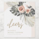 Fira den blivande bruden med dessa moderna och elegant bohemiska blommigt möhippa vin-etiketter som innehåller en båge täckt med en blommigt bouquet av torkad handflatan-löv, monstera-löv och rosa-peonier.