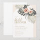 Fira den blivande bruden med denna moderna och elegant bohemiska blommigt brunch-möhippa-inbjudan som innehåller en båge täckt med en blommigt buquet av torkad handflatan, monstera löv och löv peonies.