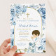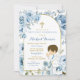 Boho Dusty Blue Blommigt Boy Praying First Communi Inbjudningar