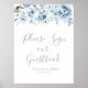 boho dusty blue blommigt guestbook-tecken i bröllo poster