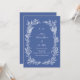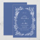 Sätt tonen för din romantiska fest med denna fantastiska blåklintsblå bröllopsinbjudan, med ömtåliga, handritade vita vilda blommor och botanisk lövverk arrangerade i en frodig, organisk kransram. Koordinera med matchande svarsbrev, detaljerade kort och tackkort för att skapa en sammanhängande brölloppsbrevpappersvit som gör ett bestående intryck på dina gäster. Perfekt för par som söker en blandning av rustik elegans och vintage-romantik med en modern, anpassningsbar twist.