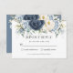Detta boho-chica blomsterkort för RSVP har vackra dammiga blå, marinblå, elfenbensvita blomster och pastelljus sagegrön bladverk. Klicka bara på knappen för att anpassa det ytterligare för att redigera texterna, ändra teckensnitt och teckensnittsfärger. Matchande artiklar finns tillgängliga i butiken. Perfekt för bröllop, brudvisning, baby shower, födelsedagsfest och fler tillfällen! (c) Somerset Fine Paperie