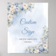 Boho Dusty Blue och Ivory blommigt Anpassningsbar Poster