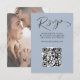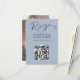 Denna moderna OSA kort sammanför elegans och bekvämlighet med ren, contemporary typografi på en mjuk, dammig blå bakgrund. Ett särskilt QR-kodavsnitt gör det möjligt för gästerna att snabbt få tillgång till din bröllop webbplats eller OSA, vilket förenklar processaa för svar. Den omvända sidan ger dig en personlig beröring med utrymme för ditt foto och monogram, vilket ger en unik och minnesvärd detalj. Den här eleganta designen blandar minimalismen med sofistikering helt och hållet anpassade, och ser till att den kompletterar alla bröllop stil samtidigt som den hjälper dig att enkelt samla svar och stil.