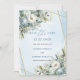 Boho Dusty Blue White Guld Flowers sparar datumet Inbjudningar
