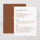 Vi presenterar vår boho Earthy Botanical Elegant Ivory Guest Information Enclosure Card, ett verkligt fängslande tillägg till din evenemangsstation. Med sin bohemiinspirerade design och sina skarpa toner blandar detta djurutrymmeskort utan problem elegans med en liten bit romantik. Eleganten och skriptet tillför kortet en sofistikerad och modern känsla, medan den mjuka bruna och elfenbenspaletten färg skapar en mjuk och inbjudande atmosfär. Blommigten och det botaniska inslag förbättrar ytterligare kortets naturliga och minimalistiska estetik, skapar den perfekt för alla tillfälle där skönhet och enkelhet önskas. Detta visitkort ger all nödvändig information till dina gäster och ser till att de har allt de behöver för att kunna göra det bästa av ditt evenemang. Vare sig det är en bröllop, en födelsedag eller något annat specialtillfälle, kommer det här kortet inte bara att sitt funktionella syfte utan också att tillföra lite elegans till din kontorssvit. Få redo att imponera på dina gäster med det här boho Earthy Botanical Elegant Ivory Guest Information Enclosure Card. Det är perfekten med bohemisk charm, modern sofistikering och mjuk blommigt skönhet. Missa inte detta tillfälle att lyfta upp din evenemangsbok och skapa ett bestående intryck på dina gäster.