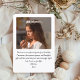 Fira en milstolpe i helig med ett hjärtligt stil med hjälp av vårt Boho Elegant First Heliga Communion Tack-fotokort. Det här snyggt designade kortet har fullt som bakgrund, överdragen med ett elegant vitt, modernt skript som lyder "tack," åtföljt av ett känsligt vitt kor under en subtil men meningsfull trossymbol. Mjuka vattenfärgsaccenter från blommigt ger en aning naturskönhet och blandar modern elegans med rustik charm. På motsatt sida hittar du plats för ett annat foto för anpassningsbarna och ett tack för personligen, skapar det här kortet som en omhuldad keepy för familj och vänner. Perfekten för att uttrycka tacksamhet till nära och kära som delade på ditt barns speciella dag är detta kort lika unikt och minnesvärt som själva firande.