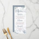 Gästerna kommer att ta hand om det här samordnande blåa menykortet för damm. Den har en mjuk blommigt- och eukalyptus-design med elegantens romantiska kalligrafi i dammig blå. Anpassa till perfektens menykort.