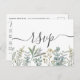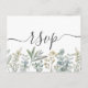 Lägg till det här unika OSA-vykortet till din inbjudningsstation. Denna utformning har eukalyptus och löv i sage-grönt och beige målad i vattenfärg. På motsatt sida finns det utrymme för din gäst att svara och din returadress.