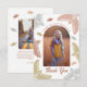 Uttryck din tacksamhet till nära och kära för deras stöd med vårt tackkort för examensfoto. Designat med snygga, bohemiska färger och prytt med charmiga, handritade folkkonstfåglar, fångar detta kort perfekt andan av nya början. Framsidan visar en elegant fotomall i en båge, så att du kan visa ditt favoritfoto från examen. Vänd på kortet för ett personligt tackmeddelande, kompletterat med en annan fotomall för en extra touch av värme och uppriktighet. Bevara minnena och dela din uppskattning med stil med denna hjärtliga symbol.
