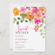 En orange, rosa och grönt blommigt, vattenfärg Söt 16 födelsedagsfest inbjudan med söt handmålade blommor i och blommor med grönt löv. En söt födelsedagsfest party.