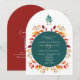 Fira bröllop i höst med den här boho-stil arch-inbjudan med en fet teal-cirkel, vattenfärg höst löv och elegant-typografi. Ringhjärtat i guld tillför en romantisk, rustik charm, medan baksidan innehåller en samordnande QR-kod för OSA. Ett val av snyggt för modern par som planerar ett firande i säsong.