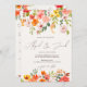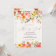 Vi presenterar vår charmerande Boho faller Blommigt Bröllop i en enda inbjudan, en vacker blandning av levande handmålade blommor i skuggor av rosa, orange, gult och grönt. Den här eleganten är utformad på ett sådant sätt att den blåser upp från överkant och grund och formar dina bröllop-detaljer med en aning bohemisk naturskönhet. Det moderna elegantens penselskriptteckensnitt tillför en sofistikerad och personlig beröring som helt kompletterar den romantiska blommigtens motiv. Idealisk för ett sommar- eller fallbröllop, den här inbjudan anger tonen för ett roligt och oförglömligt firande. Anpassa den med dina bröllop-detaljer längst bak för att skapa en unik och minnesvärd keepy för dina gäster.