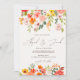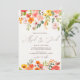 Vi presenterar vår charmerande Boho fall Blommigt Bröllopinbjudan, en vacker blandning av levande handmålade blommor i skuggor av rosa, orange, gult och grönt. Den här eleganten är utformad på ett sådant sätt att den blåser upp från överkant och grund och formar dina bröllop-detaljer med en aning bohemisk naturskönhet. Det moderna elegantens penselskriptteckensnitt tillför en sofistikerad och personlig beröring som helt kompletterar den romantiska blommigtens motiv. Idealisk för ett sommar- eller fallbröllop, den här inbjudan anger tonen för ett roligt och oförglömligt firande. Anpassa den med dina bröllop-uppgifter för att skapa en unik och minnesvärd keepy för dina gäster.