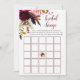 Detta trendiga bröllopsbingo-spelkort har vackra akvarellblommor i livfulla nyanser av marsala, vin, djupgrön, röd och lila, samt modern typografi som passar ihop.