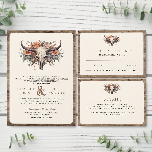 Boho Floral Cow Skull Western Wedding OSA Kort