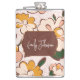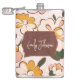 Infuse your day with a bohemian spirit with this stunning flask, featuring a whimsical floral design inspired by the free-spirited eras of the past. A rich, earthy brown frame highlights the name 'Emily Johnson' in a flowing, feminine script. The soft, pastel colors and organic shapes of the flowers create a serene and artistic appeal. This flask is not just a practical item but a piece of wearable art, ideal for expressing your unique style and enjoying life's moments with a touch of floral elegance and personalized flair.