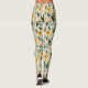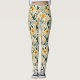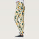Line drawings of flowers in butterscotch, dark mango, sand, and colonial white, with blue and green foliage, creates a modern, stylish, and beautiful pair of leggings that you will love.