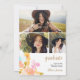 Class of 2026! This elegant graduation design features hand-painted watercolor florals in soft blush, peach, and aqua tones paired with refined gold geometric accents. The delicate botanical frame surrounds a modern layout, blending boho charm with a polished, elevated feel. The front showcases graceful script typography, while the back highlights a photo collage layout, making it perfect for sharing meaningful moments alongside event details. A beautiful option for spring and summer celebrations, this design balances soft color with subtle gold structure for a timeless yet trendy look.
