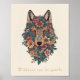 Boho Floral Wolf Wall Art Poster