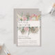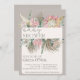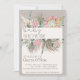 Boho-blommans duschinbjudan med ett mjukt, vintage färg-schema. Rosa blommor och pampasgräs med stänk av grönt och gult på en gräddbakgrund och grå bakgrund.