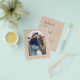 Budgetera Bröllop Boho Terracotta Spara datumkort som har ett foto på framsidan. Spara datumkorten innehåller en modern handskriven kursiv skripttypografi som är elegant, enkel och modern till använda efter att du har minimalistisk enkel bröllopsdag firande.