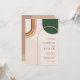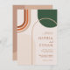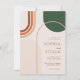 Modern boho bröllopsinbjudan med bågformer i terracotta, rost, bränd orange och mörk grönt, smaragdtoner. Samling: https://www.zazzle.com/collections/boho_arch_abstract_wedding_collection-119061662657911589