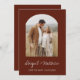 Anpassa denna Boho Terracotta Brun Foto Arch Enkel och Elegant Dubbelsidig Spara Datum Inbjudan med ditt meddelande och detaljer. Denna snygga inbjudan innehåller modern och elegant stilfull handskriven typsnitts typografi för den speciella Bröllopsfirandet.