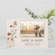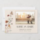 Boho Foto Spara Datum. Denna stilrena och eleganta räddningsdatum för bröllop har vackra handmålade akvarell vilda blommor arrangerade som en vacker bukett perfekt för vår-, sommar- eller höstbröllop. Hitta matchande föremål i Boho Wildflower Wedding Collection.
