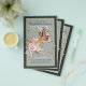 Vackra vattenfärger illustrerar räv, boho-fjädrar, burgundy och dammiga blommor i ro-rosa på inbjudningskort för möhippan, där textmallen fält på båda sidor innehåller all information om händelsen.
