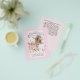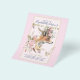 Vackra vattenfärger illustrerar räv, boho-fjädrar, burgundy och dammiga blommor i ro-rosa på inbjudningskort för möhippan, där textmallen fält på båda sidor innehåller all information om händelsen.