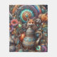 Boho Fox Raccoon Blommigt Design Fleecefilt