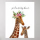 En babydusch poster med en illustration av en mamma giraff med blomman krona och baby. Anpassa namn. Matchande inbjudningar till babydusch och samordnande artiklar finns på Jill's Paperie.