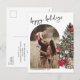 vykort för helgdag med en vattenfärgad illustration med ett festivt traditionellt Julgran, personlig med ditt favoritfamiljefoto. Redigera ditt anpassningsbar-meddelande på baksidan av kortet.