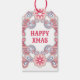 Boho Glad Jul röda och lila virvlar Presentetikett