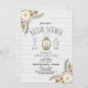 Ett bröllop inbjudningskort för möhippan med en illustration av campinglanternan i mitten med blommigt på översta lämnat hörnet och grund höger. Design har ett dammigt pastellprogram i färg. Anpassa texten. Bakgrunden är lätt grått-trämininspirerad design.