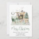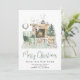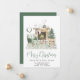Boho-inspirerad enkel flytta med en vattenfärgad illustration av en mysigt sage grönt hem insida som dekorerats för helgdagar med krans, eldstad, renar, Julgran, ljus och gnomer. "God jul" skrivs i ett skript för grönt av trendigets sage. Lägg till ditt namn och ny adress under. På motsatt sida kan du anpassa ditt flytta-meddelande och julen hälsning mer i detalj och inkludera telefonnummer och e-post-adress om du vill.