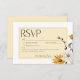 Gratulera till att din kärlek-historia blåste i en guldängs varma glöd. Vårt vita svarskort från bröllop med detaljer, men inga val av middag har klara vattenfärgade buketter. Sol-kyld gult guld, smörartad gult och guldbruna blommor med ömtåliga vita daisy, vita blommor och gult av elegant. Pelande accenter från torkade skorstenar och mjuka beige beigefärgade gräs tillför en aning rustik charm, medan sage grönt foliage och sprejer av svarta bär ger en aning av stollig. Spelfull men elegant typsnitt kompletterar perfekt designen och anger en ljus och glatt ton för din speciella dag. Den här fantastiska sviten fångar kärnan av en sommarängs ängsskugga och bjuder in dina gäster till i kärlek glädje. Skapat av Farmhouse Press.