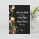 Denna inbjudan till bröllop spara datum i elegant är perfekt för en modern fall i blommigt bröllop. Den romantiska designen har vattenfärgblommor med vit elegant på en fet svart bakgrund.