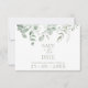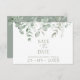 Boho Grey Foliage Eucalyptus Bröllop spara datum Card. Tryck elegant på dina gäster i bröllop med detta elegant designade spara-till-datum-kort för bröllop som innehåller vackra grönt-eukalyptus löv på en skarp vit bakgrund. Det här spara-till-datum-kortet i bröllop har en vacker grönt-foliedesign, med rustiska och botaniska vibes, perfekt för din rustiska, gröna eller eukalyptus-stil bröllop. Den minimala och moderna layouten uppmärksammar den lush-grönten, elegant eucalyptus löv-arrangemangen som sätts på en minimalistisk bakgrund med ett känsligt mörk grönt typsnitt. Med detta spara-till-datum-kort i bröllop anges tonen för ett vackert bröllop-läge omgivet av antingen silver grönt eller bröllop dekoration i grönt. Ett perfekt som tillägg till ett botaniskt eller rostfritt firande.