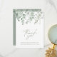 Boho Grey Foliage Eucalyptus Bröllop tackade ditt kort. Imponera elegant på dina gäster i bröllop med det eleganta designade tackkortet bröllop som innehåller vackra löv av grönt eukalyptus på en skarp vit bakgrund. Tack vare det här bröllop-kortet har du en vacker grönt bladdesign, med rustiska och botaniska vibes, perfekt för din rustiska, gröna eller eukalyptus stil bröllop. Den minimala och moderna layouten uppmärksammar den lush-grönten, elegant eucalyptus löv-arrangemangen som sätts på en minimalistisk bakgrund med ett känsligt mörk grönt typsnitt. Tack vare det här kortet i bröllop kan du ange tonen för en vacker bröllop-omgivning som omges av antingen silver grönt eller grönt bröllop dekoration. Ett perfekt som tillägg till ett botaniskt eller rostfritt firande. Söndag Collective © av Rachel Hannah Gee