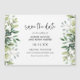 Anpassningsbar tryckte bröllop spara datum-magnetiska kort med en lättläst använda och fullt redigerbar typsnitt och färg. Lägg till dina bröllop-uppgifter omgivna av en söt botanik ram av boho vattencolor grey löv och grenar. Använda designen verktyg för att redigera typsnitt och färg eller lägga till foton för att utforma egna unika, moderna, roliga bröllop spara datum-magneter.