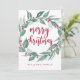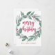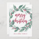Skicka varmt önskemål den här julhelgen med ett av våra platta personliger. Den här boho-designen har en vattenfärgsgrön krans med röda bär och ord "God jul" i mitten i ett modernt, handskrivet rödskript. Nedan är din familj namn att anpassa sig till. Designad av artisterna Tim Coffey och Susan Coffey.