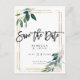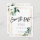 Ett vackert boho grön blomster- och falskt guld ramdesign spara datum-vykort. Lätt att ändra textdetaljer till dina egna. Massor av matchande brevpapper i denna vackra kollektion. Vänligen besök min butik för att se hela sortimentet.