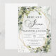 Boho grönska lövverk guld bröllop rise and shine inbjudningar