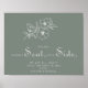 Denna boho-grönt väljer ett säte som inte poster bredvid bröllop är perfekt för ett orustigt bröllop. Utformningen har vattenfärgsäpplen och blommar i grönten.