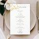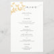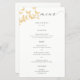 En båge av ömtåliga, vita fjärilar, handdragna och digitalt lagrade med guld dekorerar denna elegant, ett enkelt, klasssäkert och modernt menykort för bröllop. Den har modern, elegant-skriptkalligrafi med blomning. Luxuriös men enkel, klassisk men chic, modern men tidlös. Ett underbart val för den moderna romantiken, som kärlek elegant boho utformar och fjärilar.