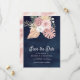 Akta dina gäster med den här eleganten och spara datumet med vackra dammiga rosa blommor och torkade handflatan löv. Lägg bara till din händelseinformation på den här mallen för enkel använda så att den blir en unik personlig som sparar datumkortet en i taget.