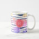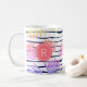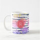 Färgfull regnbåge av tropiska handflatan löv och rand mönster, monogram kaffe mugg med runda monogram för att samordna rosan.